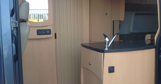Raquel is our 2 Berth Renault based Vehicle, Automatic transmission, extremely suited for exploring on the narrower roads, Rear living area with 2 single beds easily transformed into a large double, Kitchen area has 3 burner Hob, Oven and Fridge, spacious work area and sink, Hot and cold running water, Raquel has a nice toilet shower facility, underslung gas tank, fresh water and waste water tanks. Front area has a single swivel captains chair and table. Blown air heating, Satellite TV there is plenty of storage space throughout the vehicle, There is solar panels to keep the leisure batteries topped up for of grid camping